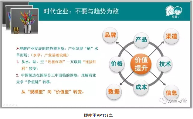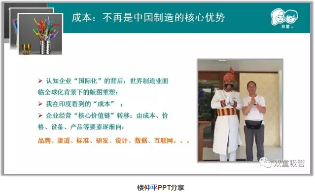 首先,雙童樓仲平分享了在全球化的背景下,成本不再是制造業(yè)的核心優(yōu)勢。企業(yè)必須面對時代的不斷變化,產(chǎn)業(yè)發(fā)展水草而居,中國制造商業(yè)競爭價值鏈轉(zhuǎn)移逐漸從規(guī)模型價值型轉(zhuǎn)變。