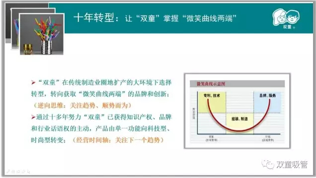 “雙童通過創(chuàng)新和轉(zhuǎn)型,開創(chuàng)了高效、低耗、綠色、環(huán)保、精細化管理、低負債運營、與各方共贏的可持續(xù)發(fā)展道路,通過十多年努力獲得知識產(chǎn)權、品牌和行業(yè)話語權的主動,產(chǎn)品由單一功能向科技型、時尚型轉(zhuǎn)變,不斷的創(chuàng)新也讓雙童全球最大成長為全球最強!