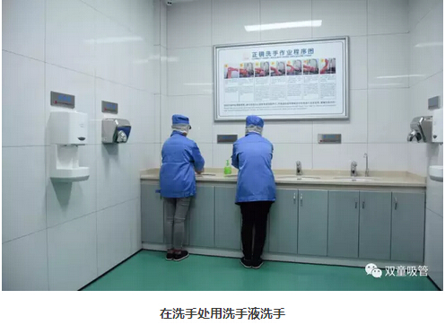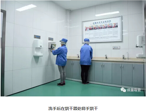 4、整理完衣物后,來(lái)到洗手消毒間,進(jìn)行洗手、烘干、消毒。