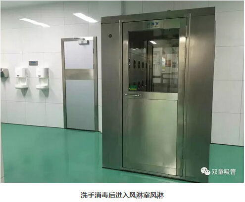 5、完成洗手消毒之后,要進(jìn)入風(fēng)淋室進(jìn)行風(fēng)淋除塵。