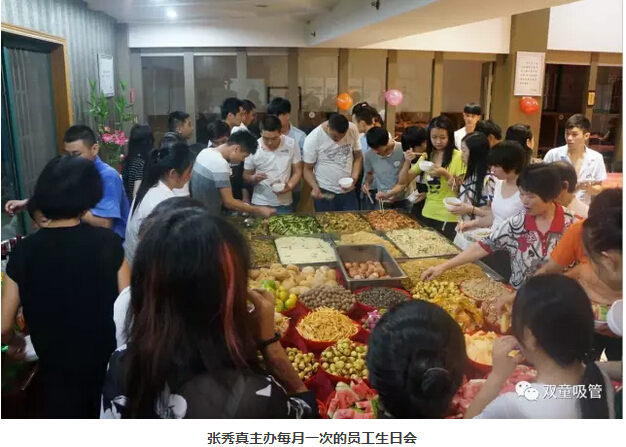值得一提的是,“雙童”員工們最喜歡的生日會(huì),基本上都是由后勤部門負(fù)責(zé)組織舉辦!如何把生日會(huì)辦好,也是一門學(xué)問。如何根據(jù)生日壽星的人數(shù)、部門、年齡段,安排生日會(huì)的形式、飲食、游戲環(huán)節(jié)等等,都是張秀真要思考的問題。員工們總說,“雙童”的生日會(huì)每次都玩得很盡興!這些都離不開張秀真的用心策劃呢!