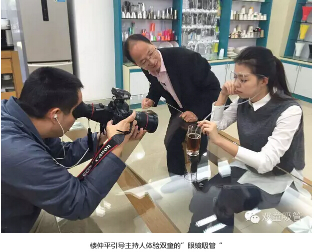 看,我們的愛心吸管、哈哈吸管、眼鏡吸管成功地吸引了攝制組的注意,將鏡頭對準它們進行特寫拍攝,并有樓仲平為它們做介紹!在這期節(jié)目播出后,我們的創(chuàng)新吸管將刷新千萬人對于一根小小吸管的傳統(tǒng)簡單認知,讓人們知道,原來吸管也可以是一種時尚!