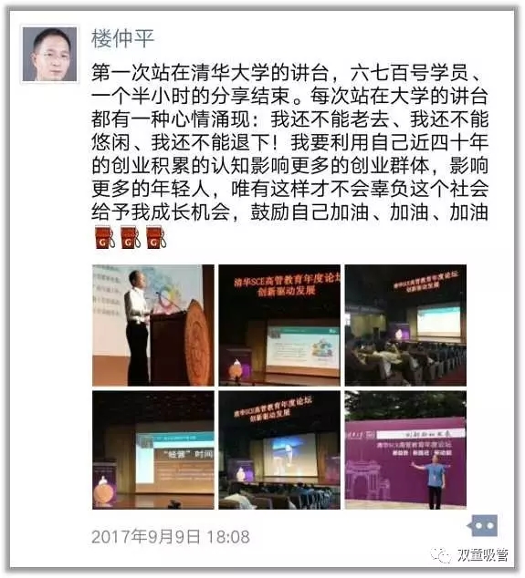 通過持續(xù)不斷地積累,雙童樓仲平也從企業(yè)管理工作者逐漸轉變?yōu)閯?chuàng)業(yè)研究和管理教育工作者,在時代快速改變下不斷更新提升自己的認知,逐漸完成了第二次人生迭代,從八零后迭代為九零后!
