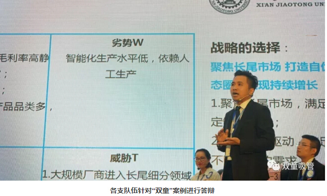 據(jù)了解,組委會(huì)在挑選總決賽案例素材時(shí),更傾向于挑選具有時(shí)代背景、可評(píng)價(jià)性和標(biāo)桿性的案例,他們希望通過對(duì)該案例的分析,引導(dǎo)大學(xué)生對(duì)企業(yè)商業(yè)模式和核心競爭力的認(rèn)知,加深在時(shí)代背景下對(duì)制造業(yè)的認(rèn)知。在挑選過程中,他們一致認(rèn)為“雙童吸管”案例最符合他們的期望,而且該案例還是2016年全國百優(yōu)案例中較突出的案例。所以,這也是“雙童”樓仲平被邀請(qǐng)擔(dān)任此次大賽評(píng)委的原因之一。