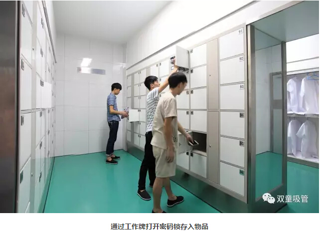 2、員工來到第一更衣區(qū),將自己的私人衣物儲存在柜子中。