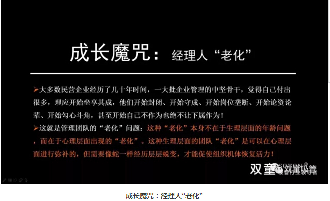 接下來,樓仲平也以“雙童”為案例,來驗證雇傭關(guān)系的轉(zhuǎn)變。企業(yè)存在成長魔咒,大多數(shù)民營企業(yè)在初期時組織關(guān)系十分簡單。但在企業(yè)規(guī)范之后,組織管理的方式在不斷改變。