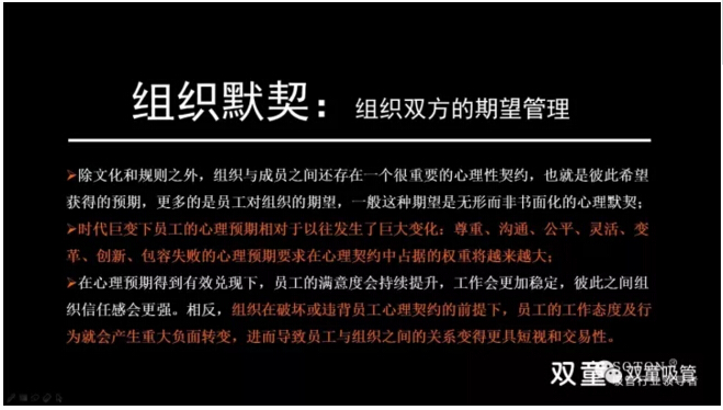 除了文化和規(guī)則之外,組織與成員之間還存在一個很重要的心理性契約,也就是彼此希望獲得的預(yù)期,更多的是員工對組織的期望。在心理預(yù)期得到有效兌現(xiàn)下,員工的滿意度會持續(xù)提升,工作會更加穩(wěn)定,彼此之間組織信任感會更強。
