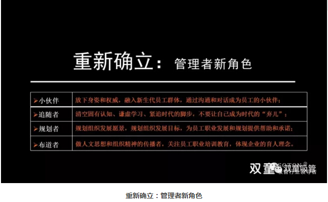 追隨者:管理者應(yīng)清空固有認(rèn)知,謙虛向年輕人學(xué)習(xí),緊追時代步伐,不要讓自己成為時代的“棄兒”;