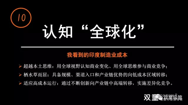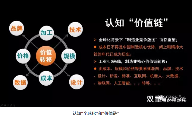 在全球化的背景下,成本不再是制造業(yè)的核心優(yōu)勢(shì)。企業(yè)必須面對(duì)時(shí)代的不斷變化,產(chǎn)業(yè)發(fā)展“棲”水草而居,中國(guó)制造商業(yè)競(jìng)爭(zhēng)“價(jià)值鏈”轉(zhuǎn)移逐漸從“規(guī)模型”向“價(jià)值型”轉(zhuǎn)變。企業(yè)經(jīng)營(yíng)“核心價(jià)值鏈”轉(zhuǎn)移,由成本、價(jià)格、設(shè)備、產(chǎn)品等要素逐漸轉(zhuǎn)向品牌、渠道、標(biāo)準(zhǔn)、研發(fā)、數(shù)據(jù)、互聯(lián)網(wǎng)…… 傳統(tǒng)業(yè)主杯具時(shí)代已經(jīng)來(lái)臨:經(jīng)驗(yàn)逐漸成為毒藥!