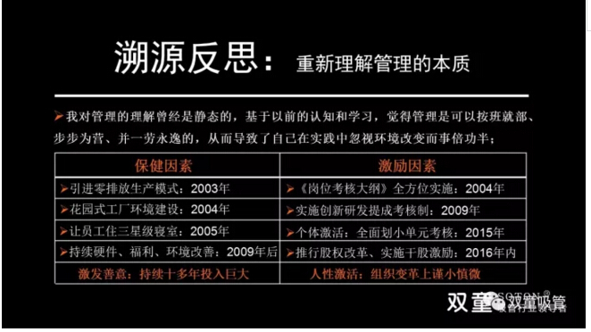 溯源反思,重新理解管理的本質(zhì):樓仲平分享道:我對管理的理解曾經(jīng)是靜態(tài)的,基于以前的認知和學習,覺得管理是可以按部就班、步步為營、并一勞永逸的,從而導(dǎo)致了自己在實踐中忽視環(huán)境改變而事倍功半。現(xiàn)在,樓仲平也一直在反思,重新理解管理的本質(zhì)!