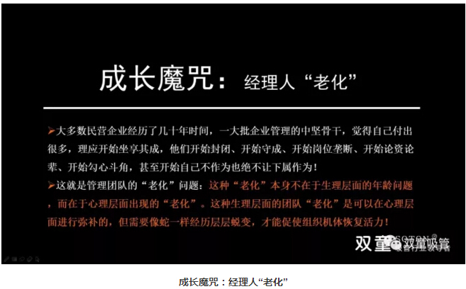 成長魔咒,經(jīng)理人老化:接下來,樓仲平也以雙童為案例,來驗證雇傭關(guān)系的轉(zhuǎn)變??陀^上每家企業(yè)的發(fā)展都存在著成長魔咒,大多數(shù)民營企業(yè)在初期時組織關(guān)系十分簡單。但在企業(yè)規(guī)范之后,組織管理的方式在不斷改變。
