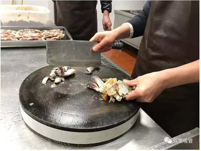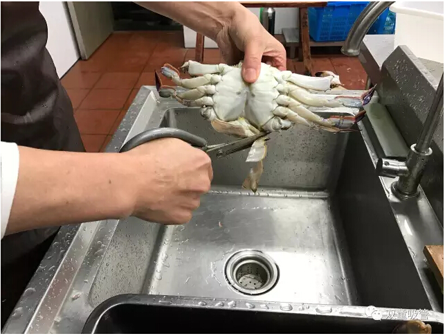 15、蟹殼切分兩半,切分過(guò)程中的膏體流失盡量收集,不要遺棄。