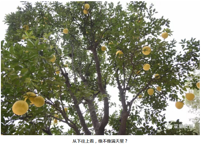 已經(jīng)轉(zhuǎn)黃的大柚子高高低低的掛滿了枝頭,和青綠的葉子應(yīng)和著,煞是好看呢!從樹下往上看,像不像星星掛滿天的趕腳?吸管妞還發(fā)現(xiàn),有幾個柚子長得非常的低,真的可以用唾手可得來形容,可是……竟然沒有吃貨來摘?這是怎么回事呢?