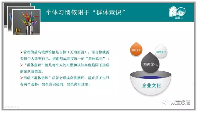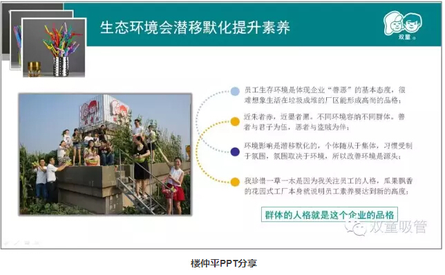 除此之外,屋頂菜園、廠區(qū)的綠化、甚至是隨處可見的鏡框標(biāo)語都在潛移默化地影響著員工,瓜果飄香的花園式工廠本身就說明員工素養(yǎng)要達(dá)到新的高度。通過這樣的方式,員工長時間自律提升后就形成了自身的行為習(xí)慣,在改善工作生活的同時形成精細(xì)化管理氛圍。所以,即使沒有明令禁止,雙童人也非常自覺不會去采摘柚子,更不會破壞廠區(qū)里的一草一木!