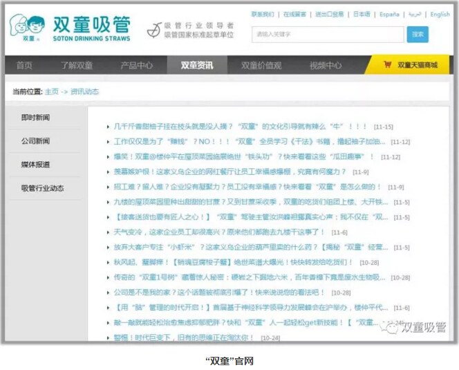 如今,“雙童”專門設(shè)置有5人編制的文宣部門,負(fù)責(zé)運(yùn)營(yíng)微博、微信、官方網(wǎng)站等十幾個(gè)自媒體應(yīng)用平臺(tái),整體流量和社會(huì)關(guān)注度位于中國(guó)制造業(yè)前列!