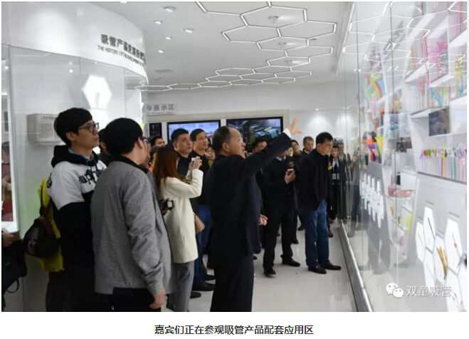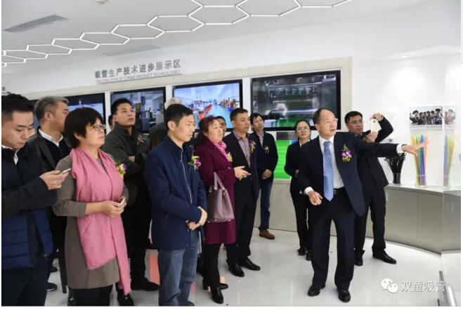 揭幕儀式之后,所有嘉賓們一起進(jìn)入中國(guó)吸管博物館進(jìn)行參觀,共同觀看了中國(guó)吸管博物館宣傳片。雙童樓仲平和大家一一介紹了吸管產(chǎn)業(yè)發(fā)展的歷史和現(xiàn)狀、吸管生產(chǎn)技術(shù)進(jìn)步展示區(qū)、吸管產(chǎn)品配套應(yīng)用區(qū)、創(chuàng)新產(chǎn)品體驗(yàn)區(qū)、吸管產(chǎn)品DIY展示區(qū)、吸管產(chǎn)業(yè)資料展示區(qū)等各項(xiàng)展示區(qū)域,嘉賓們?cè)趨⒂^的過(guò)程中連連驚嘆:一根吸管原來(lái)還有這么豐富的內(nèi)容展示!