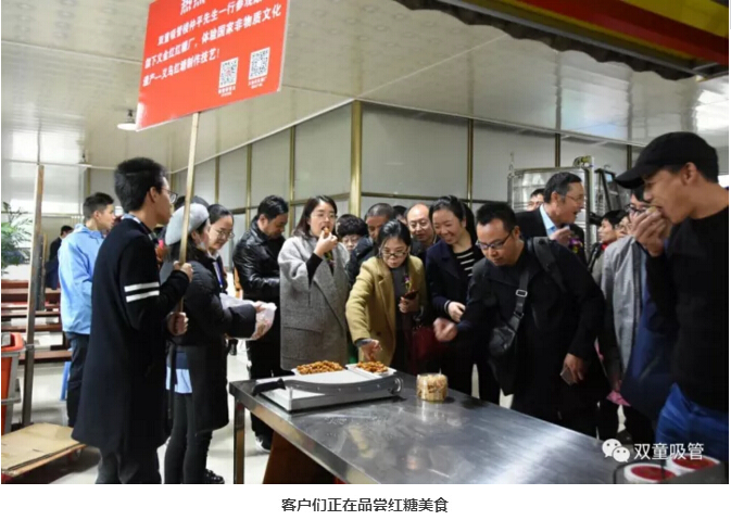 在參觀過程中,客戶們也親自品嘗了用古法制作的紅糖麻花、炮筒、紅糖塊等美食,大家紛紛贊嘆紅糖還可以做出這么多花樣,正宗的義烏紅糖真美味!