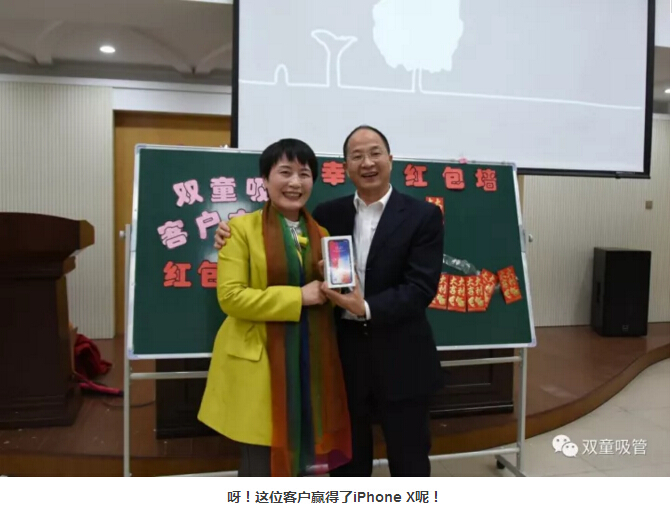 如此好的氛圍當(dāng)然少不了活動(dòng)助興,活動(dòng)當(dāng)天,我們舉辦了“點(diǎn)贊有禮”、“砸金蛋送好禮”、“幸運(yùn)紅包墻”等一系列活動(dòng)。瞧!“點(diǎn)贊有禮”活動(dòng)一等獎(jiǎng)的客戶(hù)獲得了時(shí)尚時(shí)尚最時(shí)尚的iPhone X手機(jī)呢!請(qǐng)收下大家羨慕嫉妒恨的眼神!