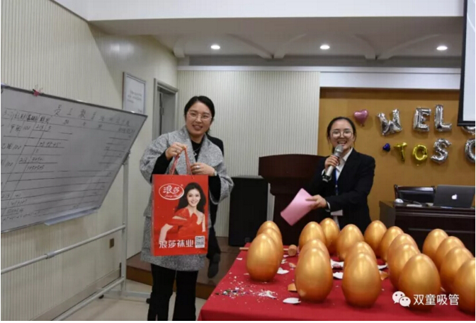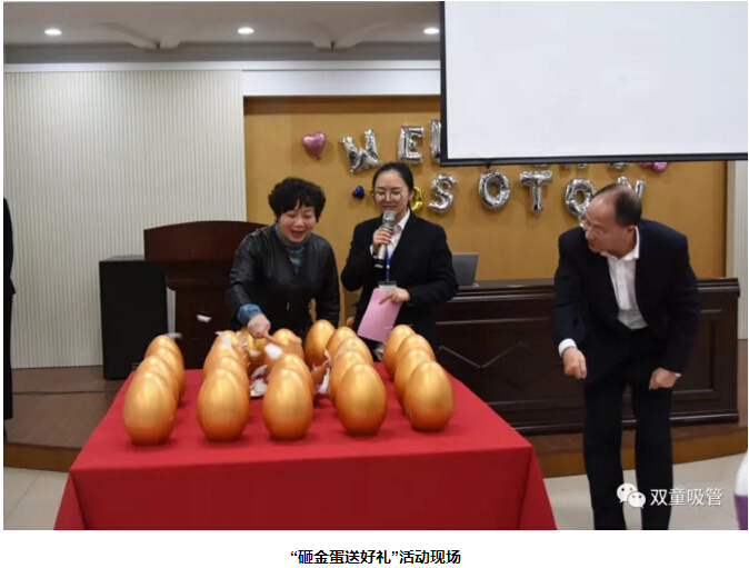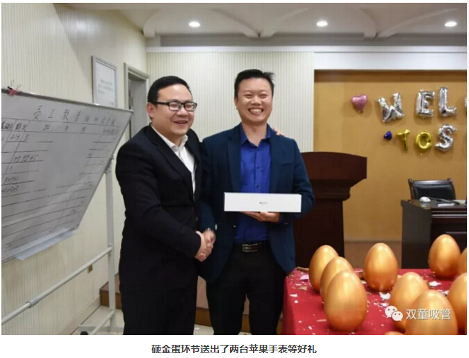 接下來(lái),我們也舉辦了“砸金蛋送好禮”活動(dòng)!隨著一個(gè)個(gè)金蛋被砸開(kāi),各種好禮也隨著禮花“破殼而出”!蘋(píng)果手表,金華火腿禮盒,浪莎襪禮盒…… 在拿到一件件豐厚禮品后大家笑得都快合不攏嘴了!