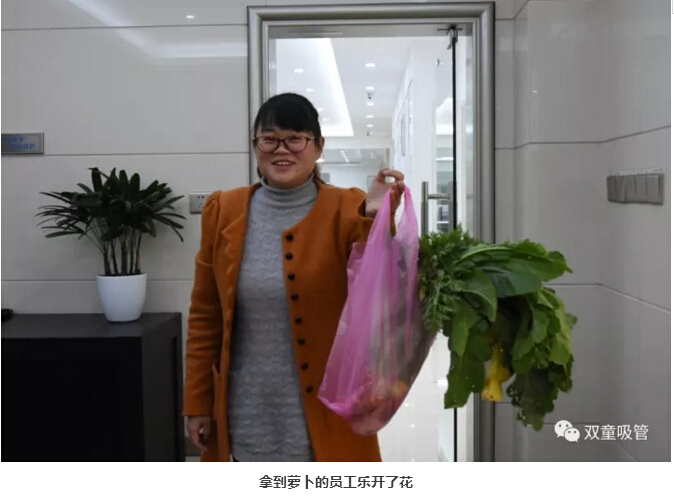 沒過多久,拔好的蘿卜就堆了一堆,這些蘿卜作為公司福利分給需要做飯的員工家庭們,這可把大家伙都樂壞了!