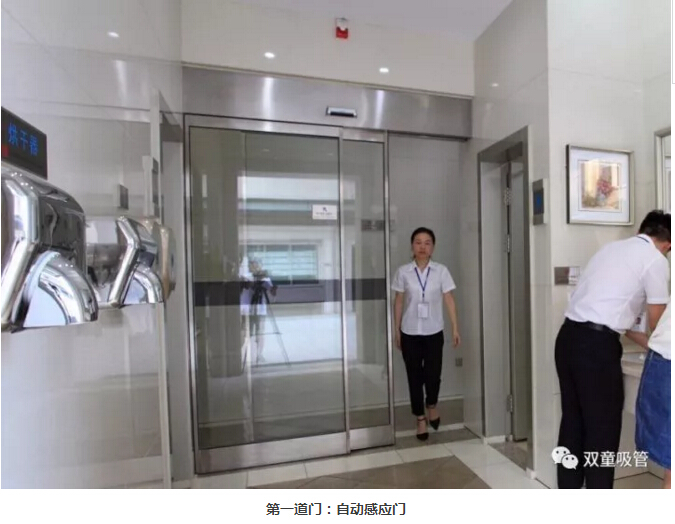 1.首先,員工們要經(jīng)過第一道自動(dòng)感應(yīng)門才能進(jìn)入生產(chǎn)區(qū)域。