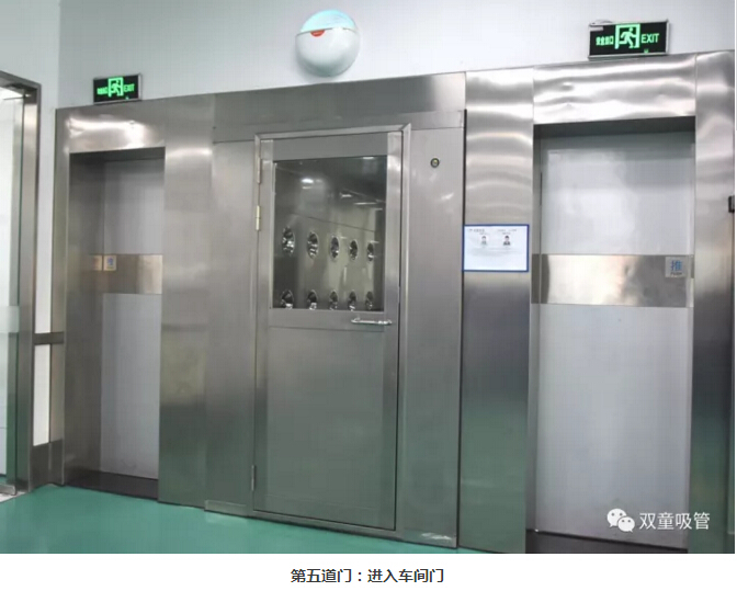 5.員工們風(fēng)淋后經(jīng)過第五道車間入口門,進(jìn)入車間進(jìn)行生產(chǎn)工作。