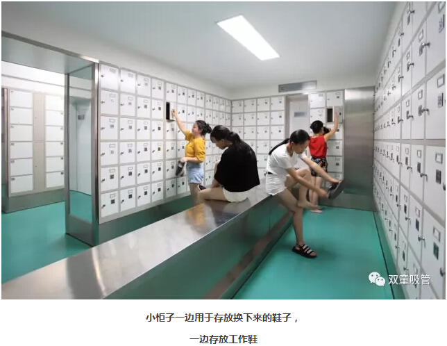 1、員工進(jìn)入車間的第一步,就是要在更鞋區(qū)將自己的鞋子換為工作鞋。