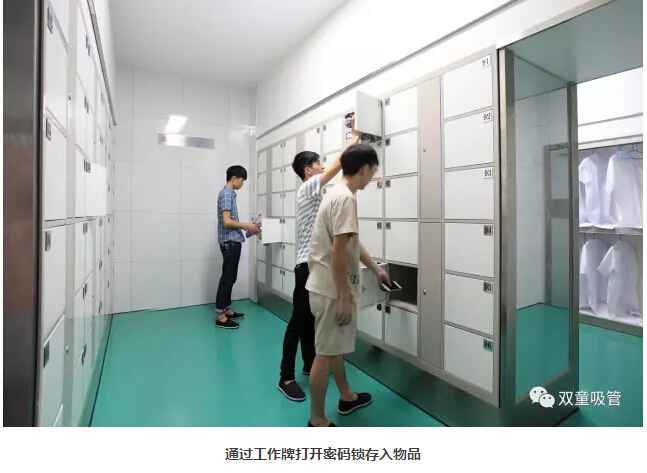 2、員工來到第一更衣區(qū),將自己的私人衣物儲(chǔ)存在柜子中。