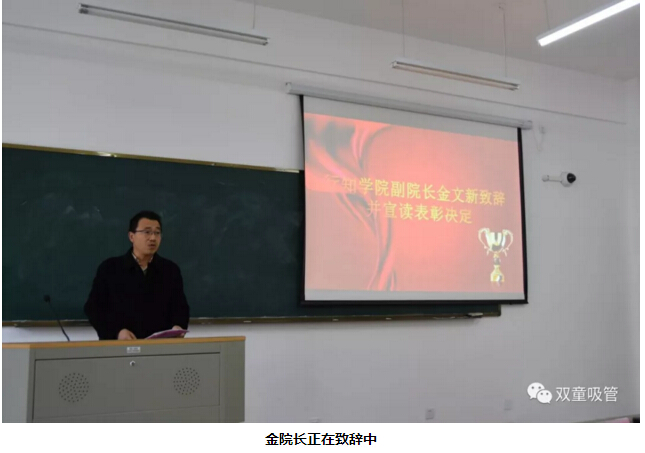 在頒獎大會上,行知學院副院長金文新致辭并宣讀表彰決定。雙童樓仲平及學生代表也對當日主題進行了分享。在分享過程中,樓仲平也勉勵在座的同學們,榮譽不是最重要的,重要的是要深刻認知到無論是個人,還是一個組織,要適應這個社會的高速變革,唯有終身學習!