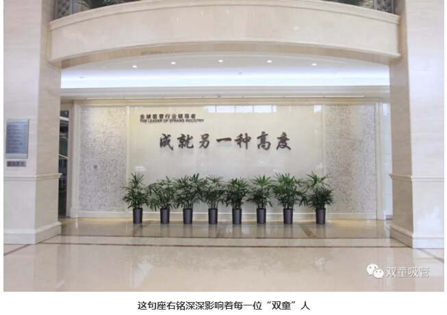 很多來“雙童”參觀的客人都會覺得疑惑,為什么在“雙童”最顯眼的行政大廳,會有一面“成就另一種高度”的文化墻?為什么參觀“雙童”的客人都要在此合影?為什么在“雙童”樓仲平的辦公桌后,一直掛著一幅“以小博大”書法作品?這兩句話究竟有何意涵?對“雙童”又有著什么樣的意義呢?