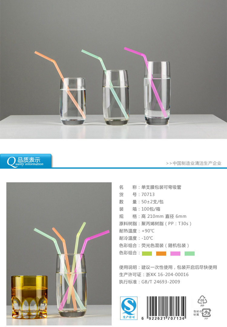 70713雙童50支單支膜包裝彎吸管