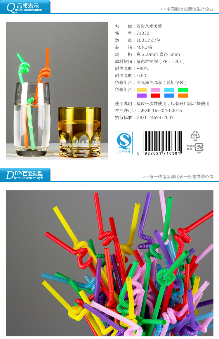 71030雙童100支雙彎彩色混裝藝術(shù)吸管